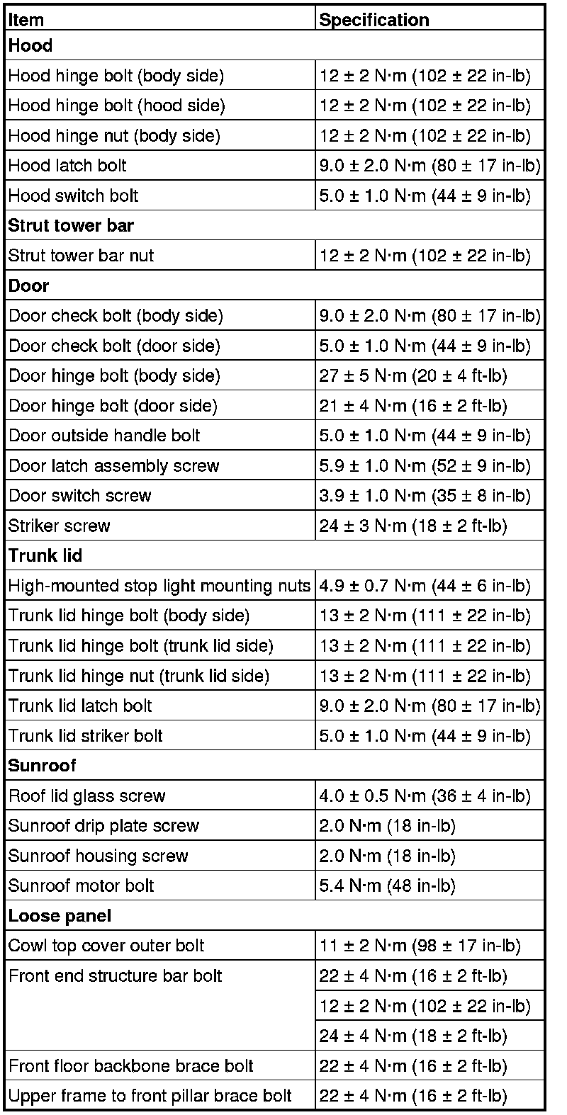 FASTENER TIGHTENING SPECIFICATIONS