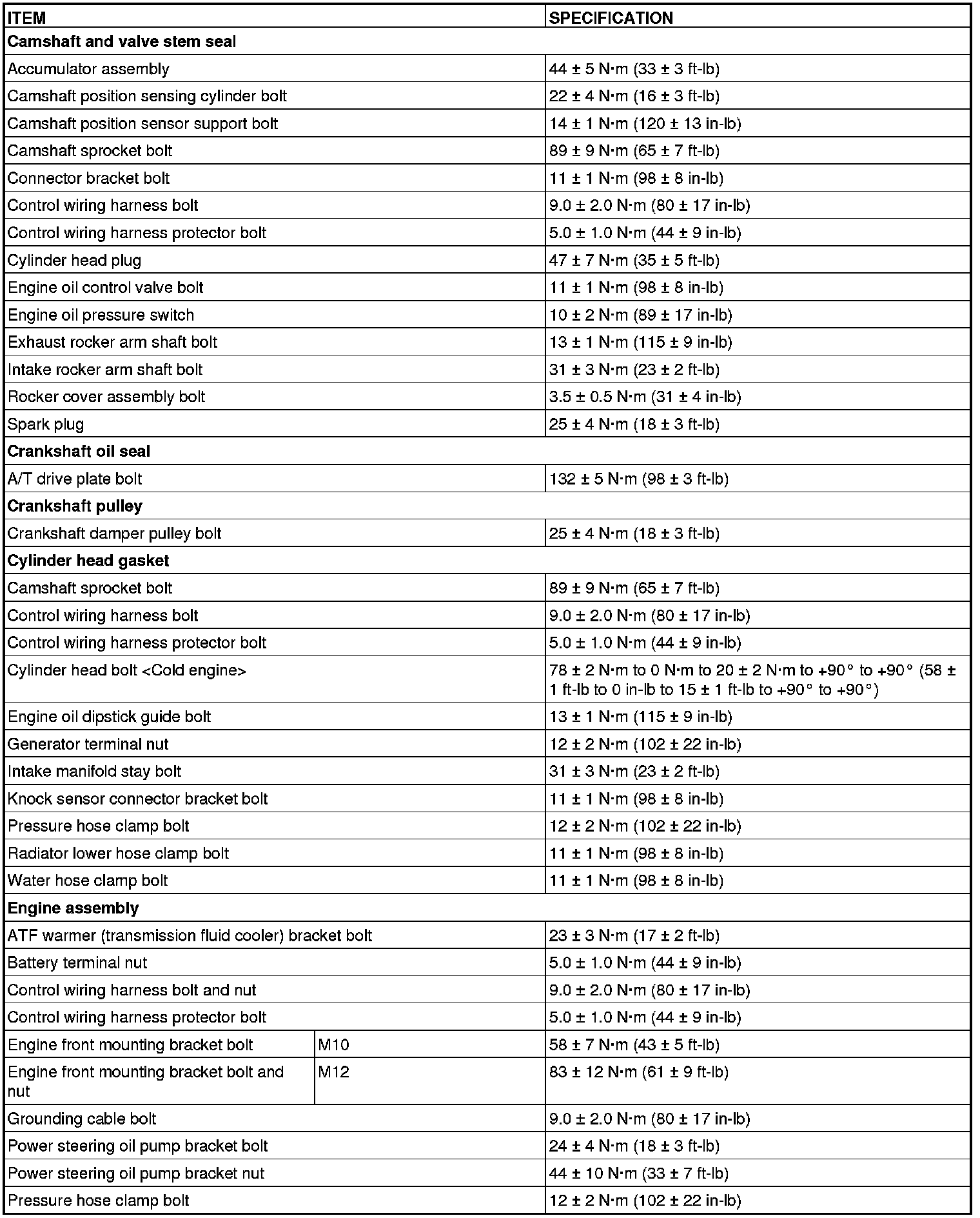 FASTENER TIGHTENING SPECIFICATIONS
