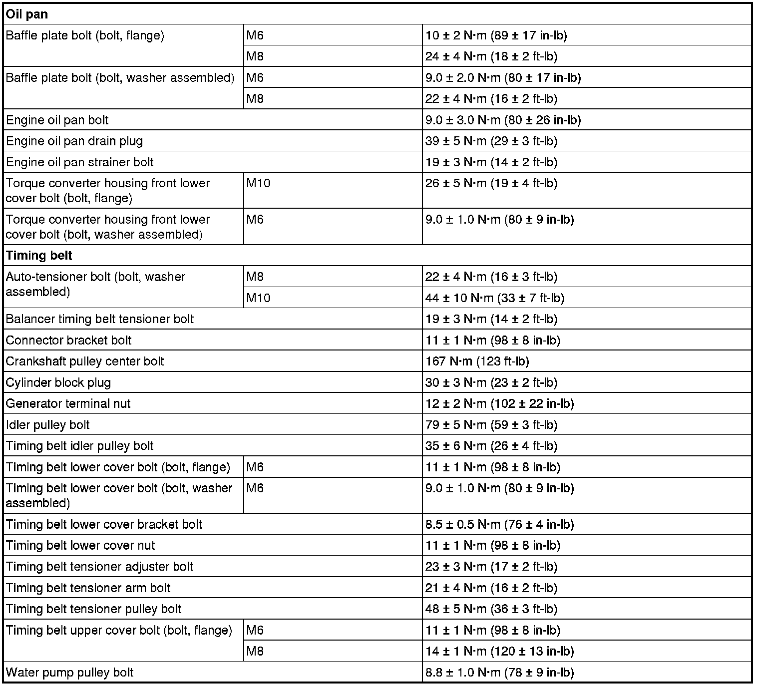 Fastener Tightening Specifications