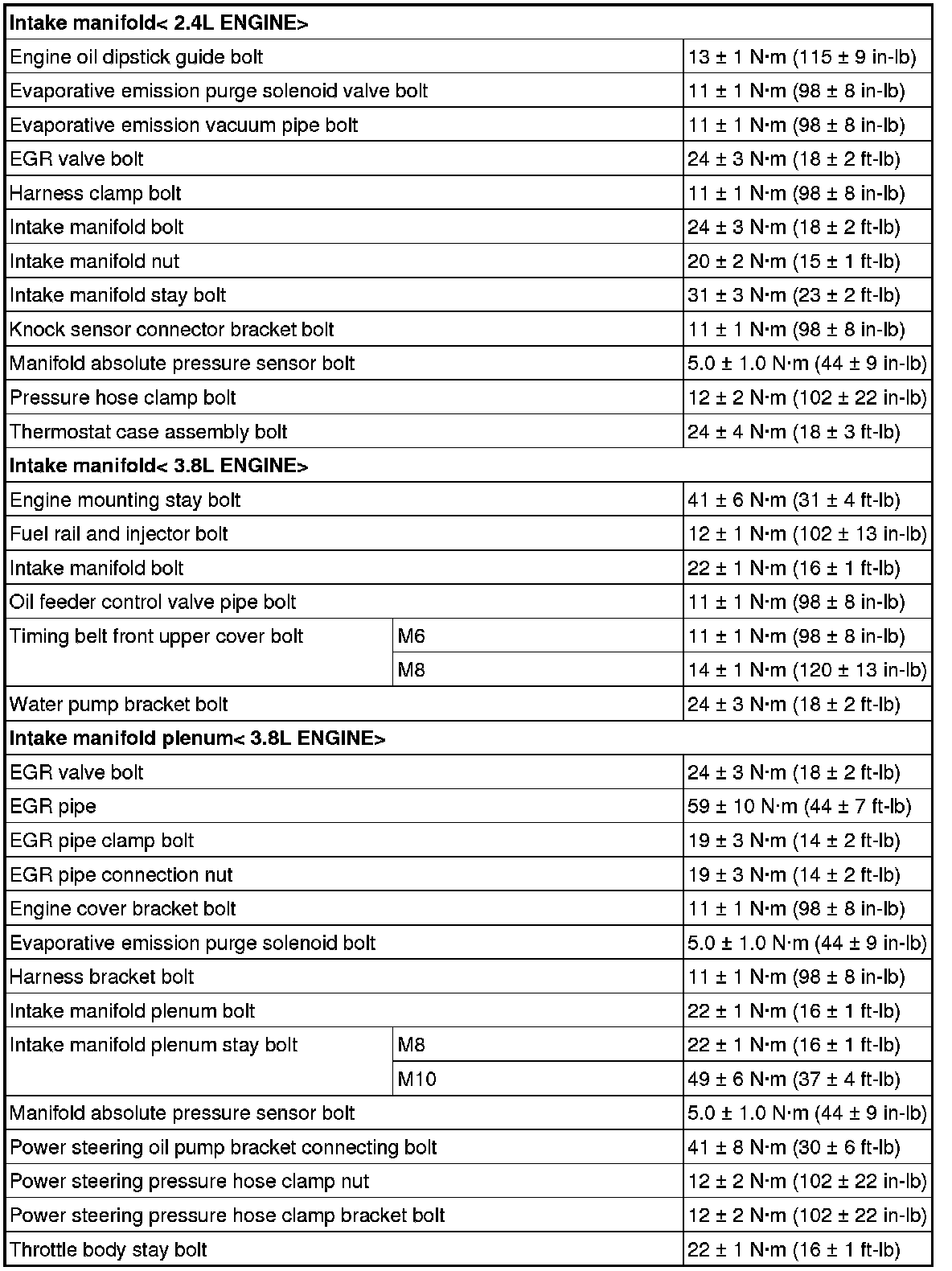 Fastener Tightening Specifications