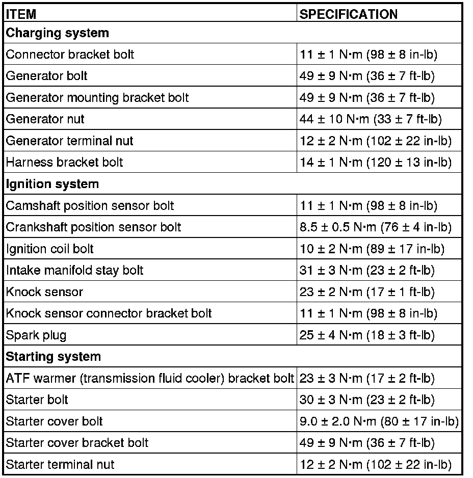 FASTENER TIGHTENING SPECIFICATIONS