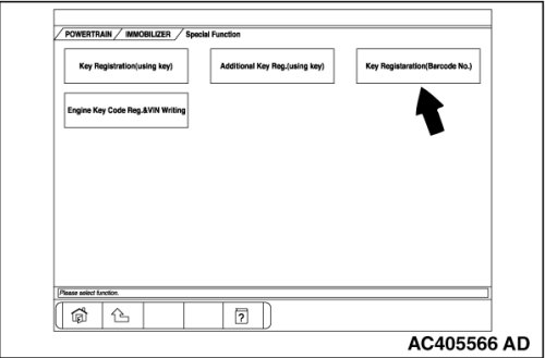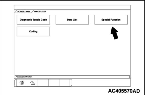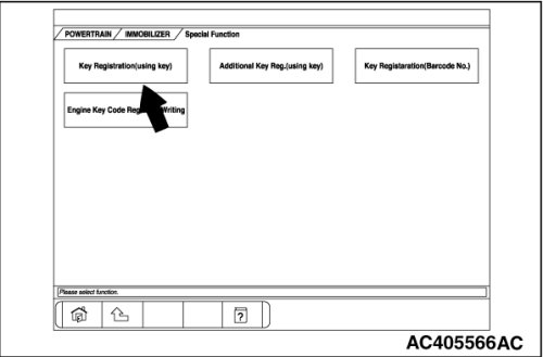 When the powertrain control module or the ETACS-ECU is replaced, or the ignition key is lost or additional keys are requested, the ignition key must be used to register encrypted codes.