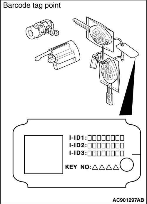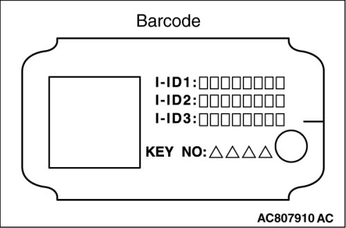 - After the ignition key registration is finished, discard the barcode plate correctly at Mitsubishi dealer. The barcode plate has important information of the immobilizer system. Therefore, improper disposal of the barcode plate may decrease the security level.