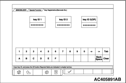8. Enter the ID on the bar code plate which is attached to the ignition key, and press the OK button.
