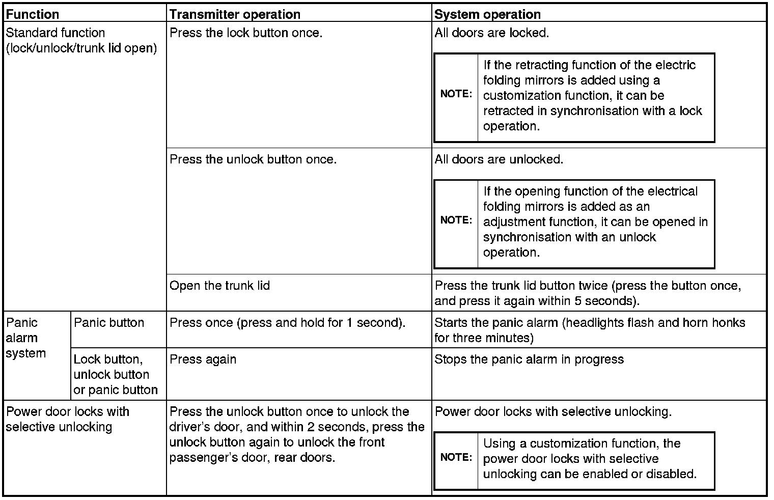 - Settings of the keyless entry function can be adjusted using a customization function.