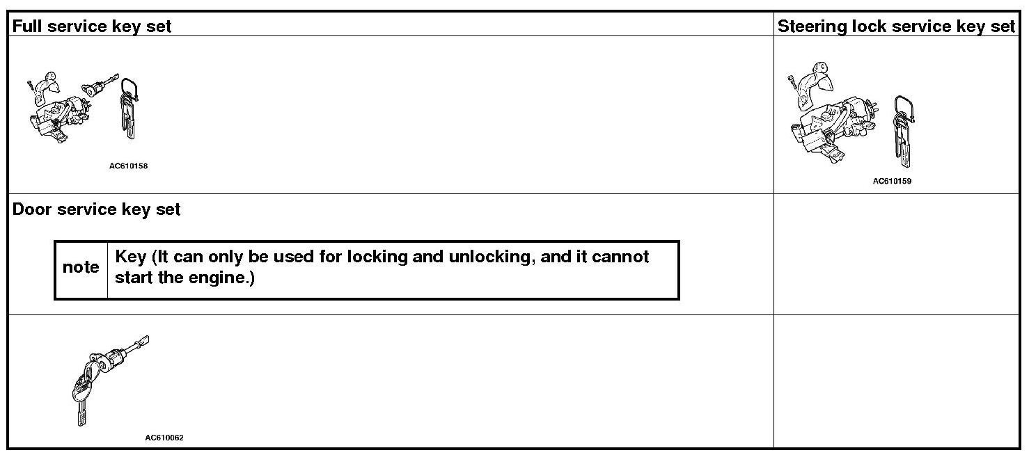 By operating the scan tool MB991958 (M.U.T.-III sub assembly) screen, the ID code registration and the TPMS can be registered and antenna communication required to the keyless operation system can be performed. KOS and keyless operation key are indicated as F.A.S.T and F.A.S.T.-key respectively in the scan tool MB991958 (M.U.T.-III sub assembly) screen.