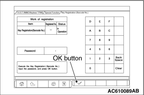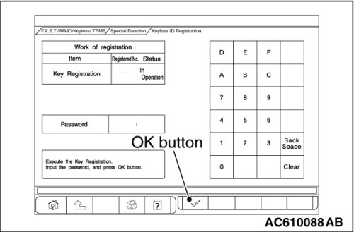 - When the key cannot be registered using scan tool MB991958, refer to Inspection Procedure 2 "The ignition key cannot be registered using scan tool Inspection Procedure 2 .