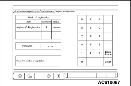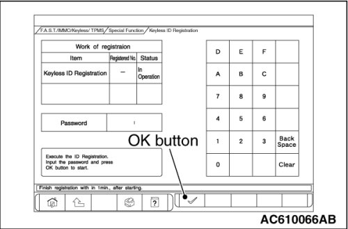 3. Push the OK button after "Keyless ID Registration was finished." is displayed.
