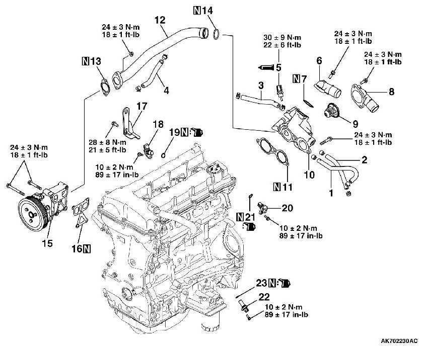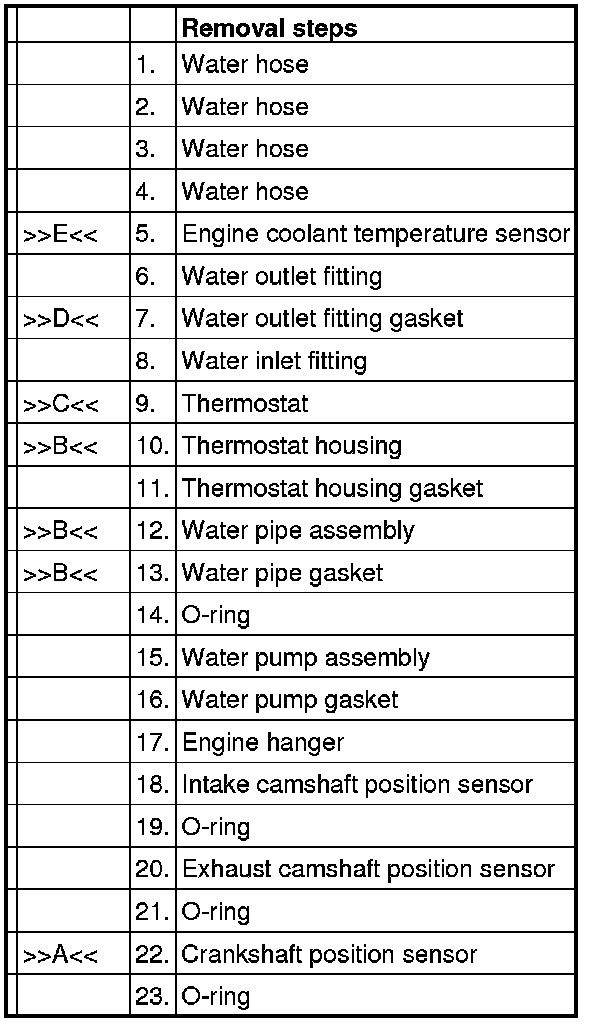 4. Temporarily tighten them to the cylinder head and water pump. Then tighten them to the specified torque.