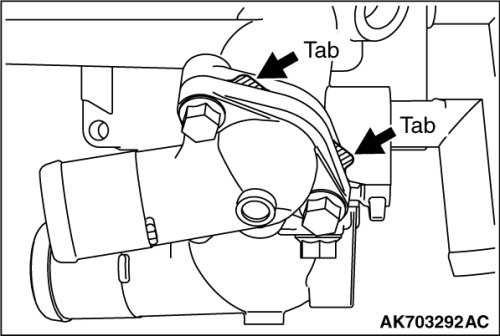 Install a new gasket so that the tab is positioned as shown in the illustration.
