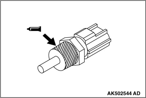 1. Apply an appropriate and minimum amount of sealant (LOCTITE 262, Three bond 1324N or equivalent) to the engine coolant temperature sensor, taking care not to allow sealant to squeeze out.