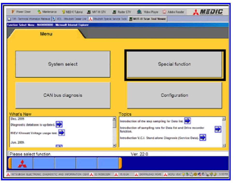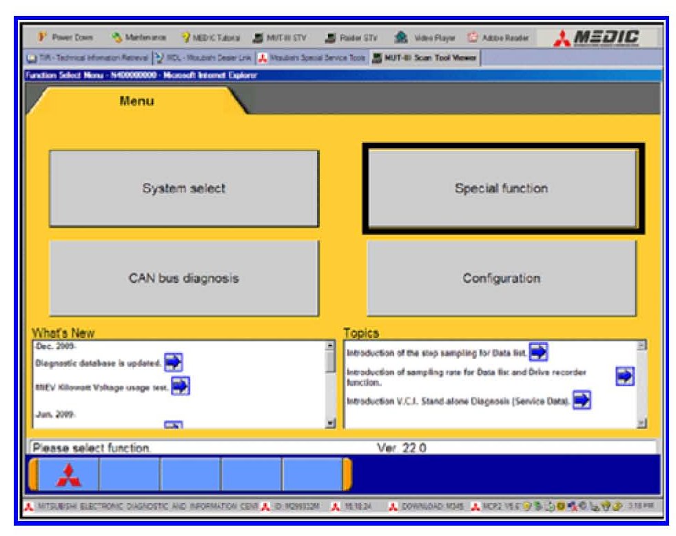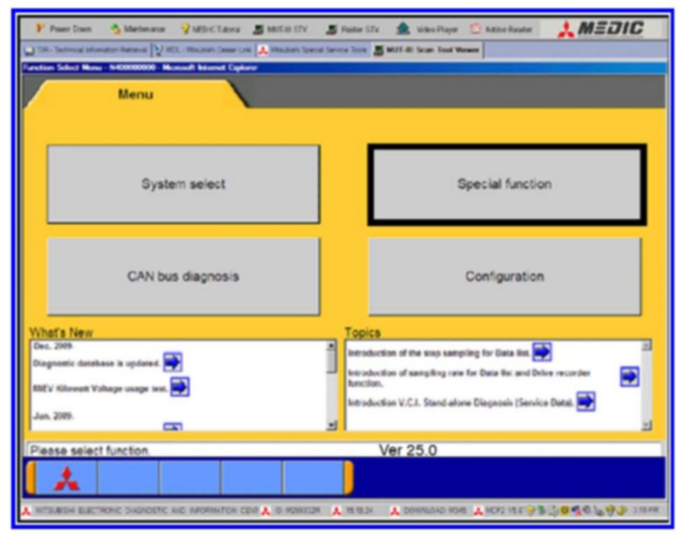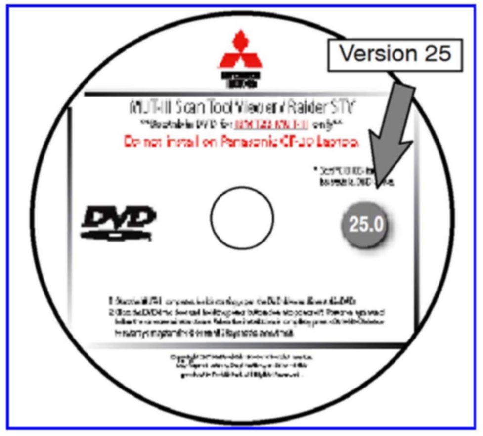 2. If the version displayed on your MUT-III Main Page is lower than version 25, locate the MUT-III Scan Tool Viewer CD (ver 25.0) and follow the instructions on the CD label to update your MUT-III.