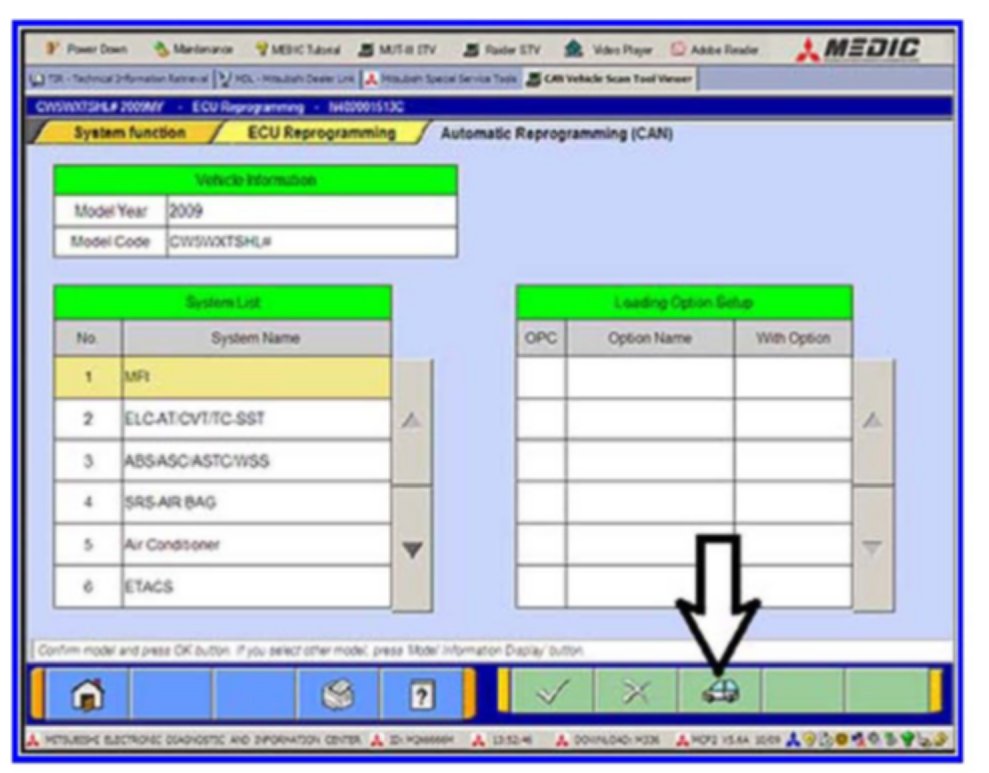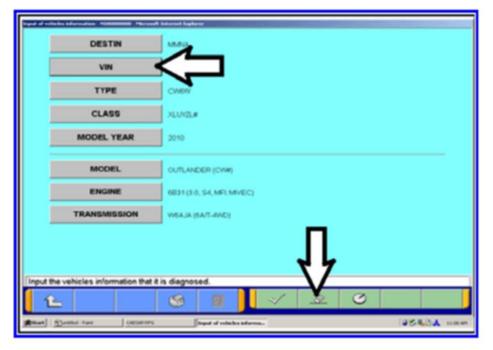 h. Click on the icon in the lower RH corner of the screen to have MUT-III automatically read the VIN. If a message appears saying that the VIN cannot be input automatically manually type the 17 digit VIN into the VIN field at the top of the page.