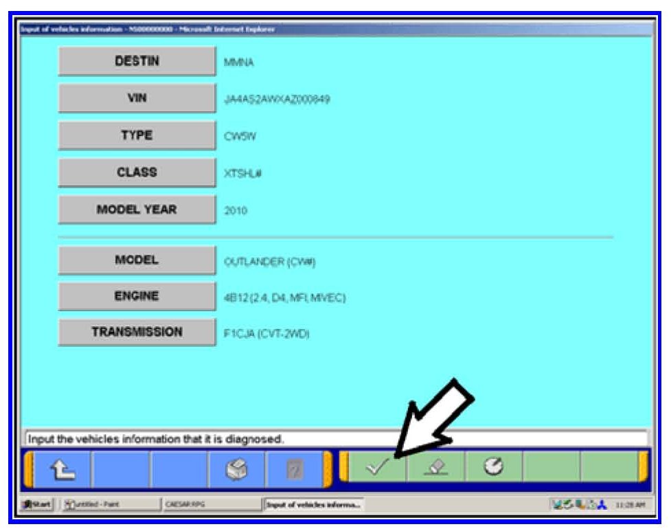 I. Confirm that all data matches the vehicle and click the check mark at the bottom of the page.