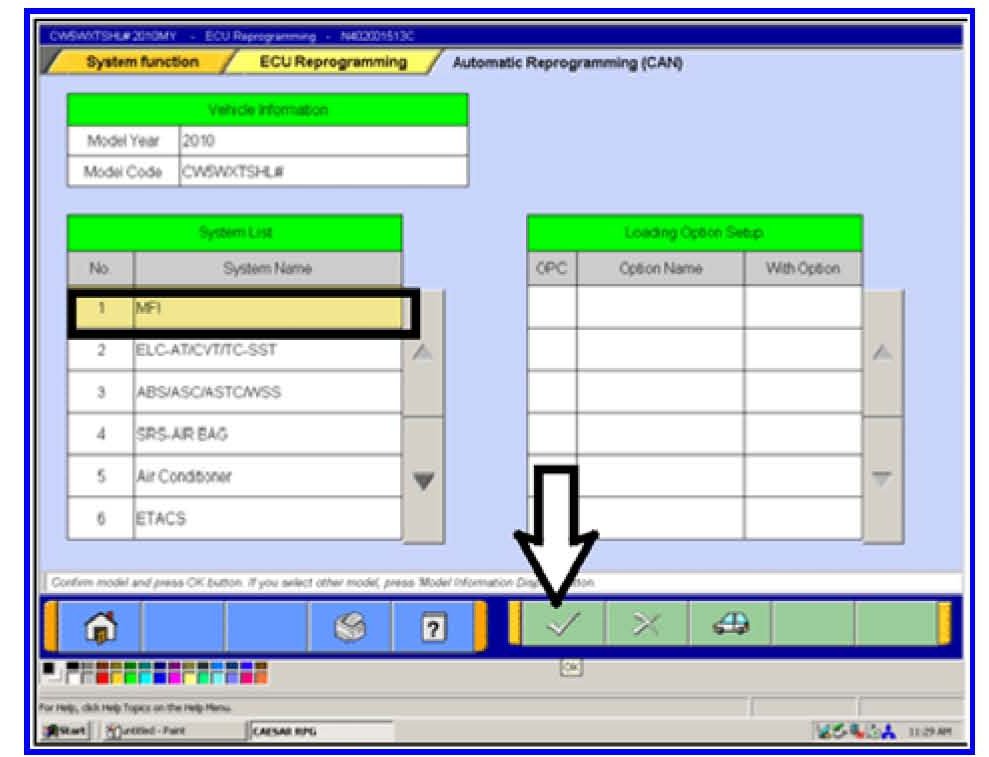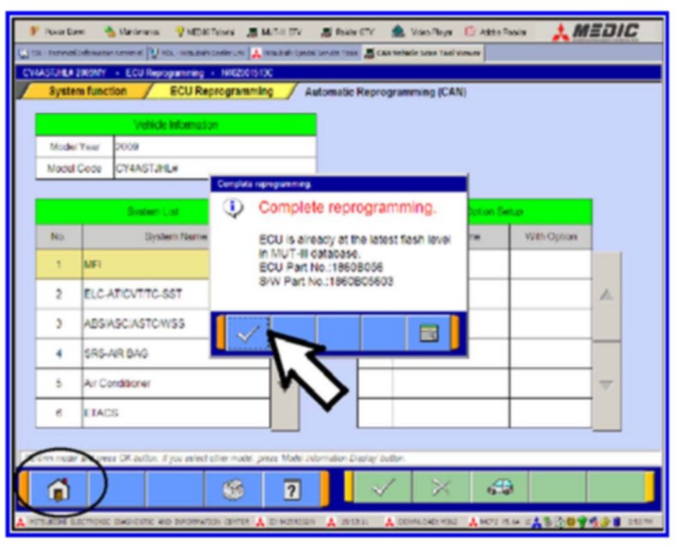 q. Click the check mark and you will be returned to the "ECU Reprogramming" page.