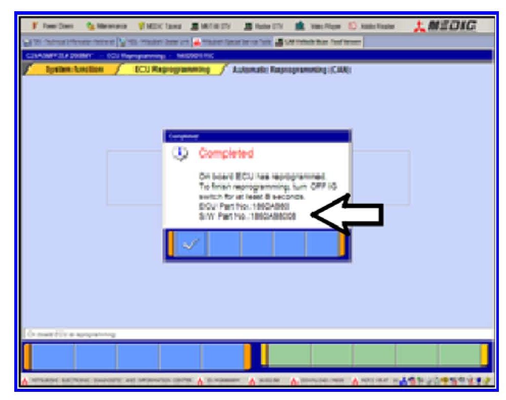 0. This message will display when ECM reprogramming is successfully completed. Confirm the "New S/W P/N" displayed matches the table.