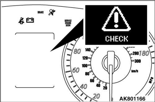 If the vehicle equipped with 2.0 L turbocharged engine continues the rough driving like competitive running*1, the amount of carbon mixed into the engine oil tends to increase. This can possibly cause the timing chain to gradually elongate. To prevent this, the function or logic monitoring the amount of elongation of the timing chain is integrated into the ECM. When the ECM detects the elongation of the timing chain, the warning is shown on the multi-information display of combination meter as shown in the illustration. This gives the driver the information that the visual check of the elongation of the timing chain is necessary.