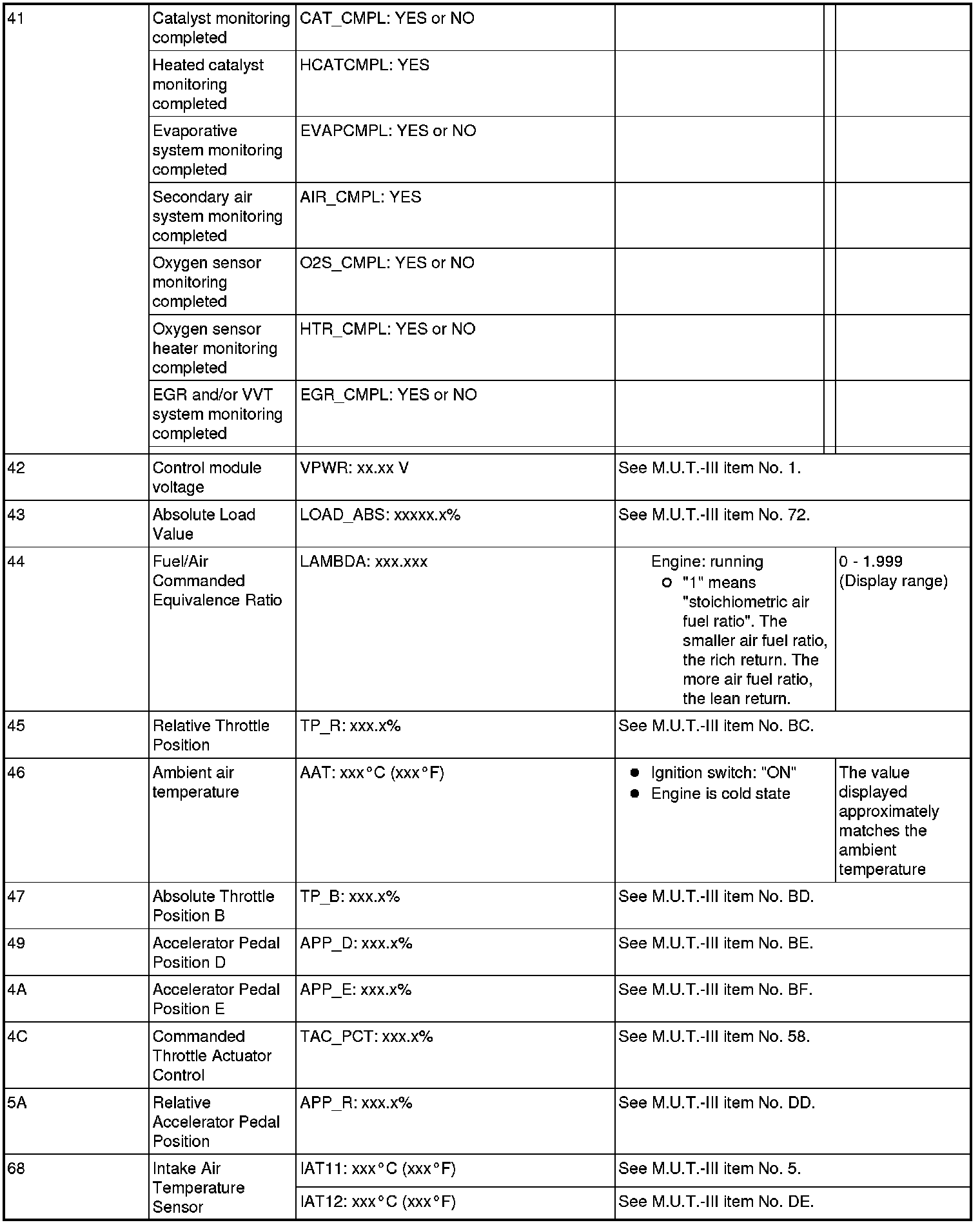 General Scan Tool (GST) Mode 01 Reference Table