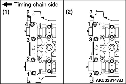 Tighten each camshaft bearing cap mounting bolt to the specified torque in the order of number shown in the figure in two or three steps.