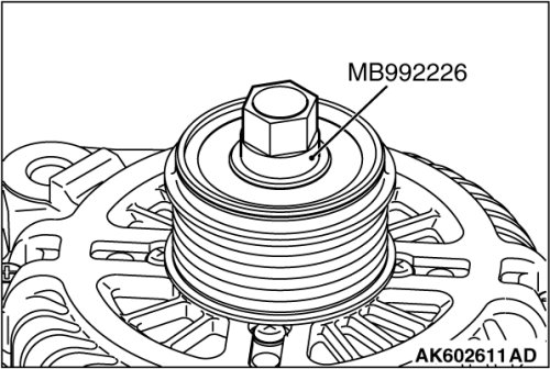 1. Set the special tool MB992226 to the pulley.