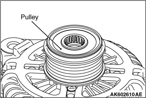 4. Hold the pulley with the closed wrench. Rotate the rotor shaft clockwise to remove the pulley.