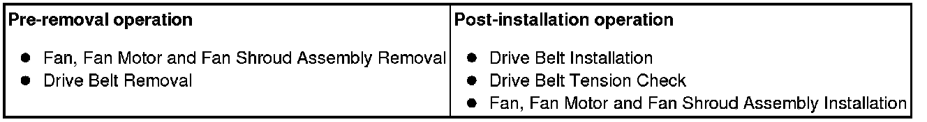 2. Tie the removed A/C compressor and clutch assembly with a string at a position where it will not interfere with the removal and installation of the generator assembly.