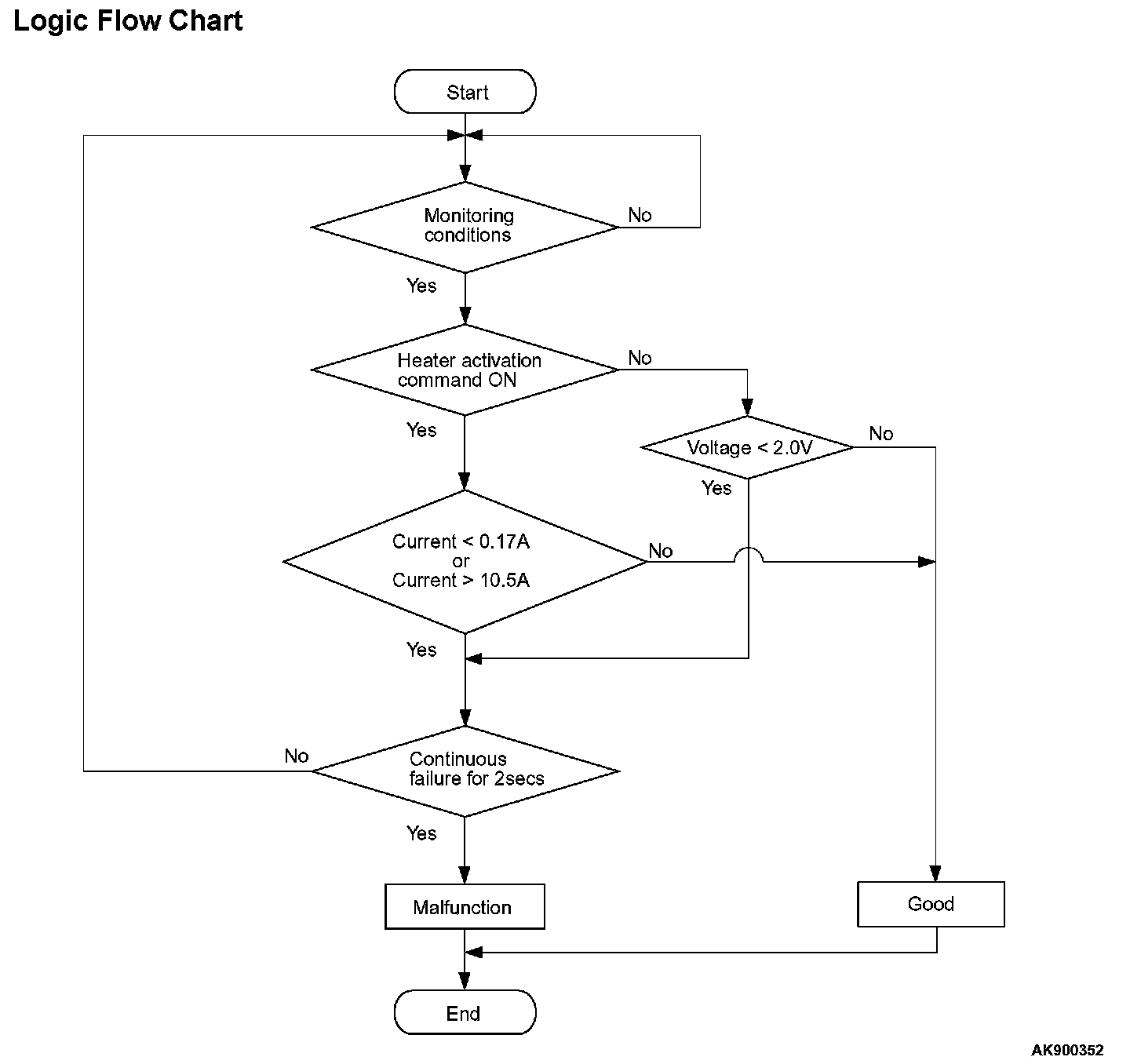 - The ECM checks whether the heater current is within a specified range when the heater is energized.
