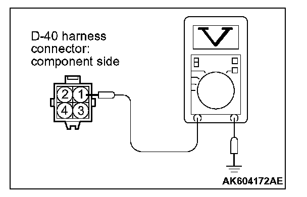 1. Disconnect the connector D-40 and measure at the harness side.