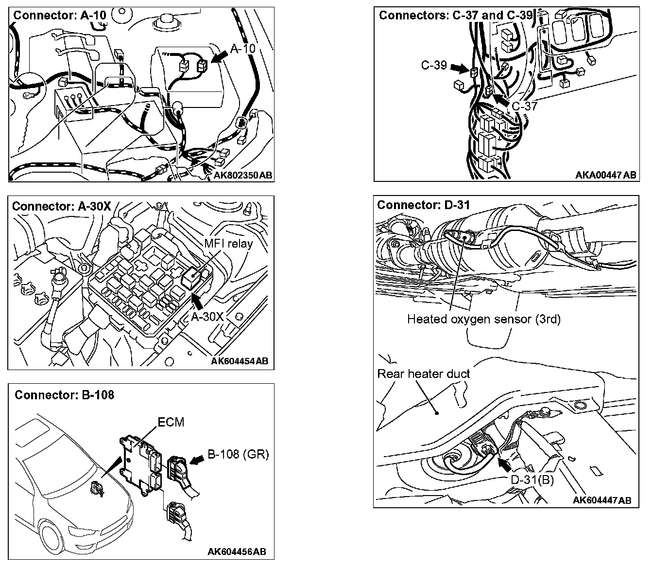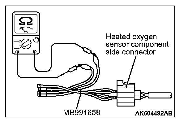 1. Disconnect heated oxygen sensor (3rd) connector D-31 and connect test harness special tool, MB991658, to the connector on the heated oxygen sensor (3rd) side.