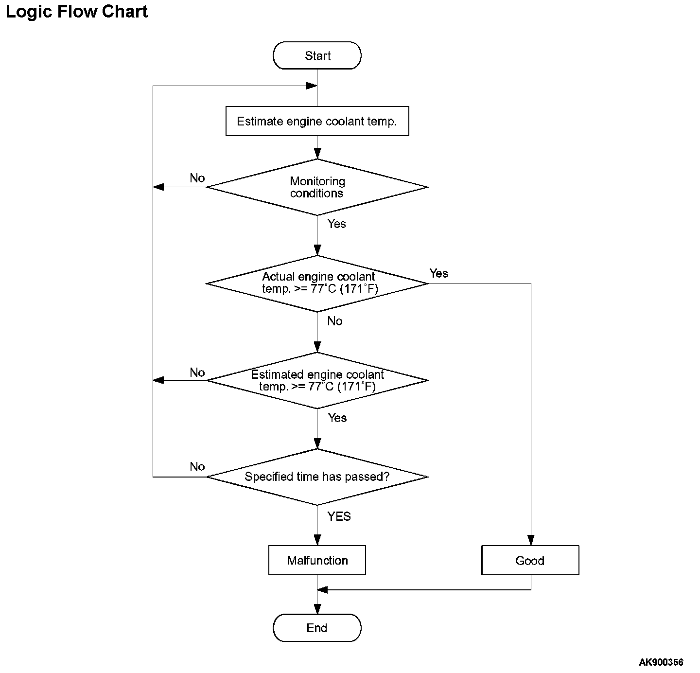 - After the estimated engine coolant temperature rises above 77 °C (171 °F), the actual engine coolant temperature is less than 77 °C (171 °F) even though the specified time has passed.