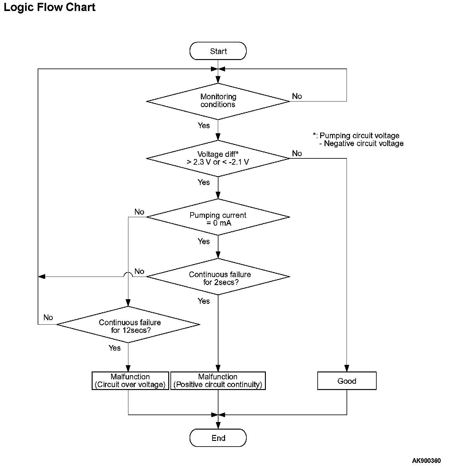 - The negative circuit voltage subtracted from the pumping circuit voltage is be lower than -2.1 volts or higher than 2.3 volts for 12 seconds.