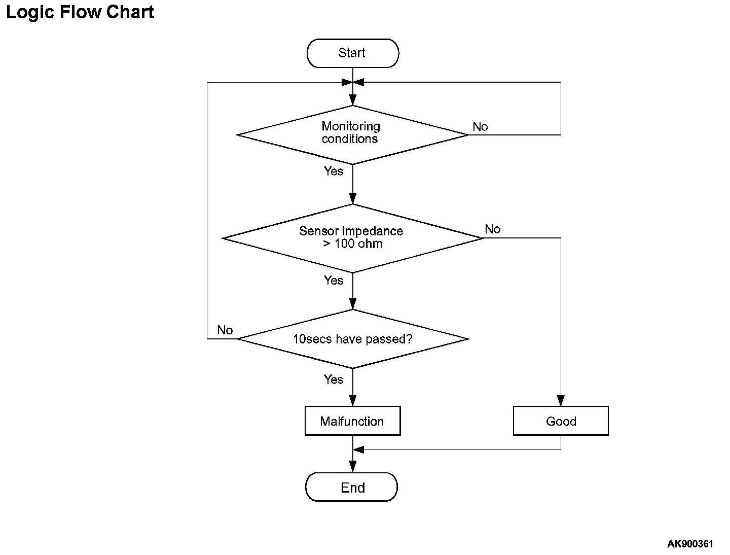 - The linear air-fuel ratio sensor is heated by the linear air-fuel ratio sensor heater or the exhaust gas. If the linear air-fuel ratio sensor remains not activated although being under the conditions where it can sufficiently be activated, the DTC is stored as a malfunction.