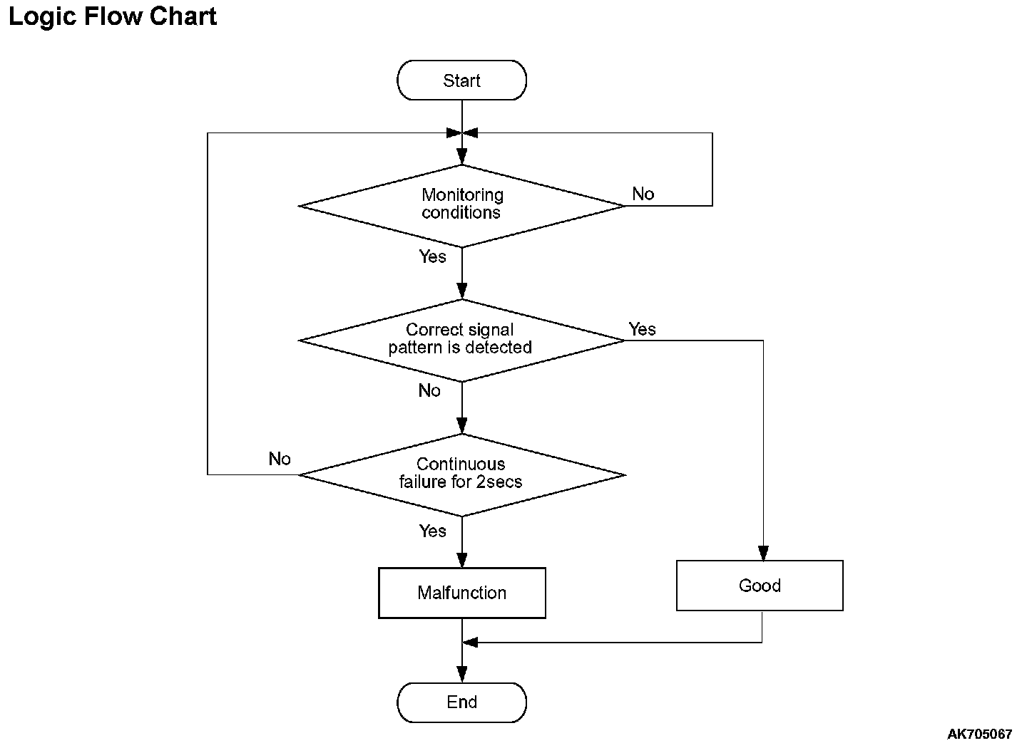 - Normal signal pattern is not inputted from the crankshaft position sensor signal and exhaust camshaft position sensor signal for 2 seconds.