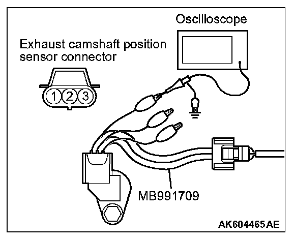 2. Connect the oscilloscope probe to the exhaust camshaft position sensor side connector terminal No. 3.