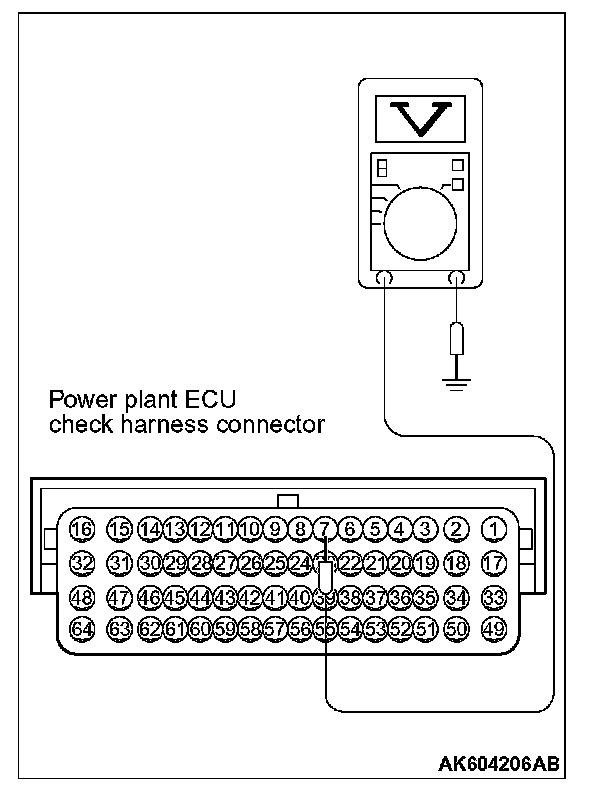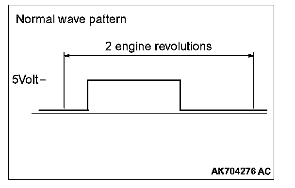 NOTE: When checking with the ECM side connector, disconnect all ECM connectors. Connect the power plant ECU check harness special tool MB992110 between the separated connectors. Then connect the oscilloscope probe to the check harness connector terminal No. 7.