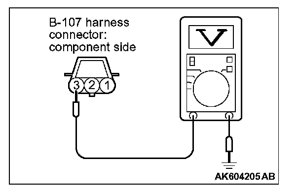 STEP 4. Measure the sensor supply voltage at exhaust camshaft position sensor harness side connector B-107.