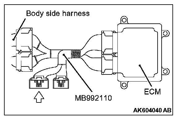 1. Disconnect all ECM connectors. Connect the power plant ECU check harness special tool MB992110 between the separated connectors.