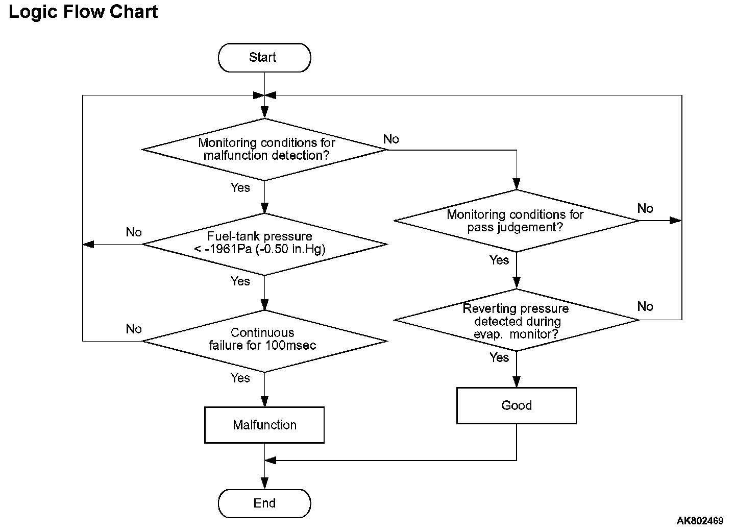 - The pressure in the fuel tank is less than -1961 Pa (-0.58 in.Hg) for 0.1 second.
