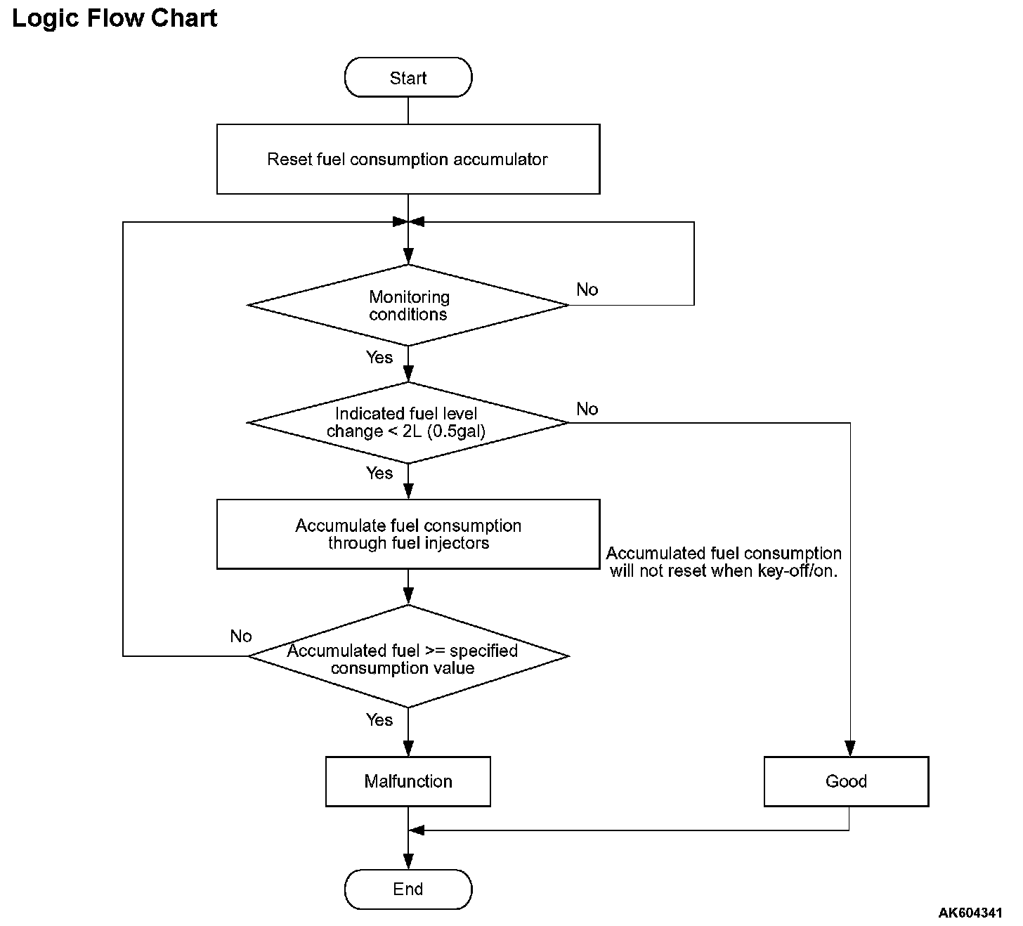 - When the fuel consumption calculated from the operation time of the injector amounts to 20 liters (5.2 gal), the amount of fuel in tank calculated from the fuel level sensor is less than 2 liters (0.5 gal).