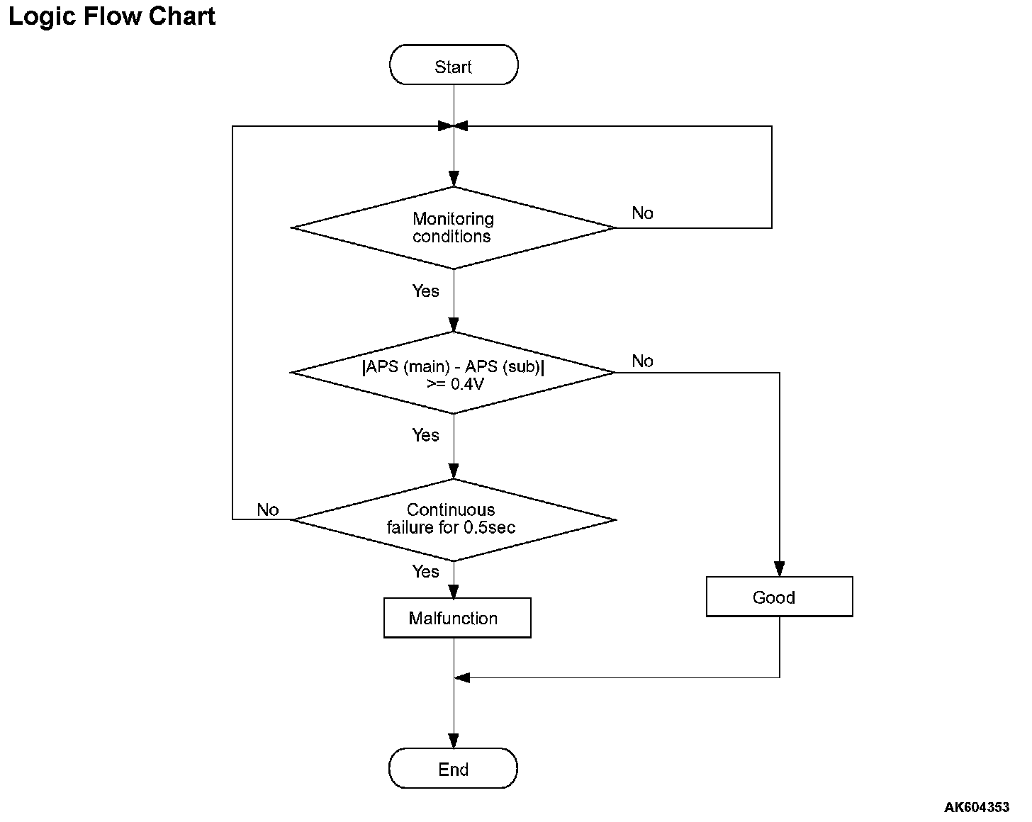 - Change of accelerator pedal position sensor (sub) output voltage per 40 milliseconds is less than 0.06 volt.