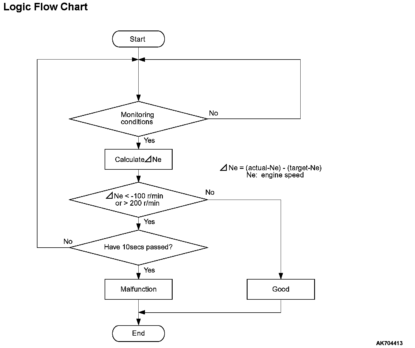 - The actual idle speed is more than the target idle speed by 200 r/min (300 r/min*) or more for 10 seconds.