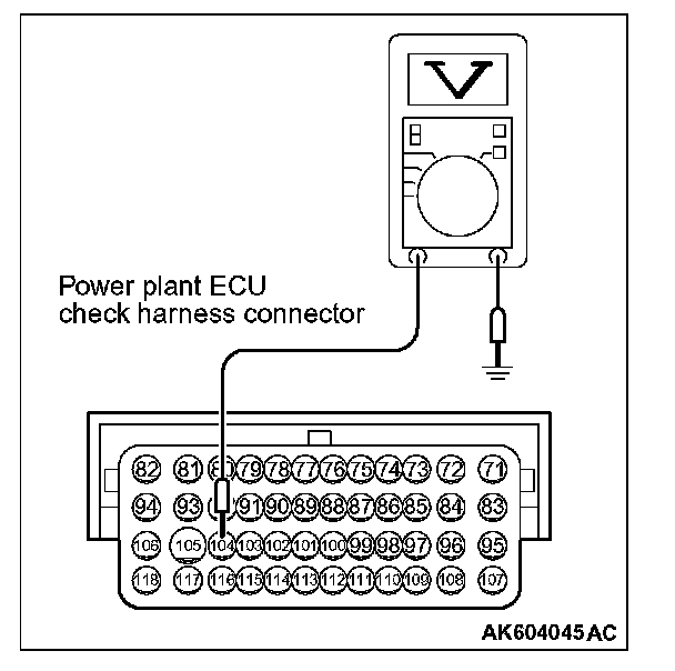 2. Measure the voltage between terminal No. 104 and ground.
