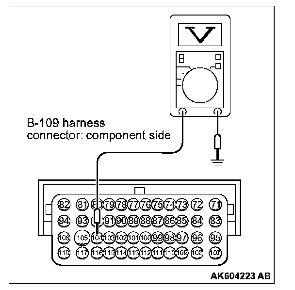STEP 3. Measure the power supply voltage at ECM connector B-109 by using power plant ECU check harness special tool MB992110.