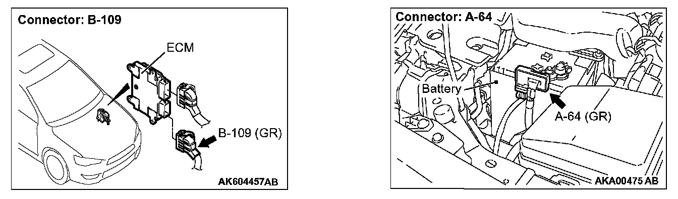 STEP 5. Check for open circuit and short circuit to ground between battery current sensor connector A-64 (terminal No. 1) and ECM connector B-109 (terminal No. 99).