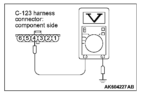 STEP 3. Measure the sensor supply voltage at accelerator pedal position sensor harness side connector C-123.