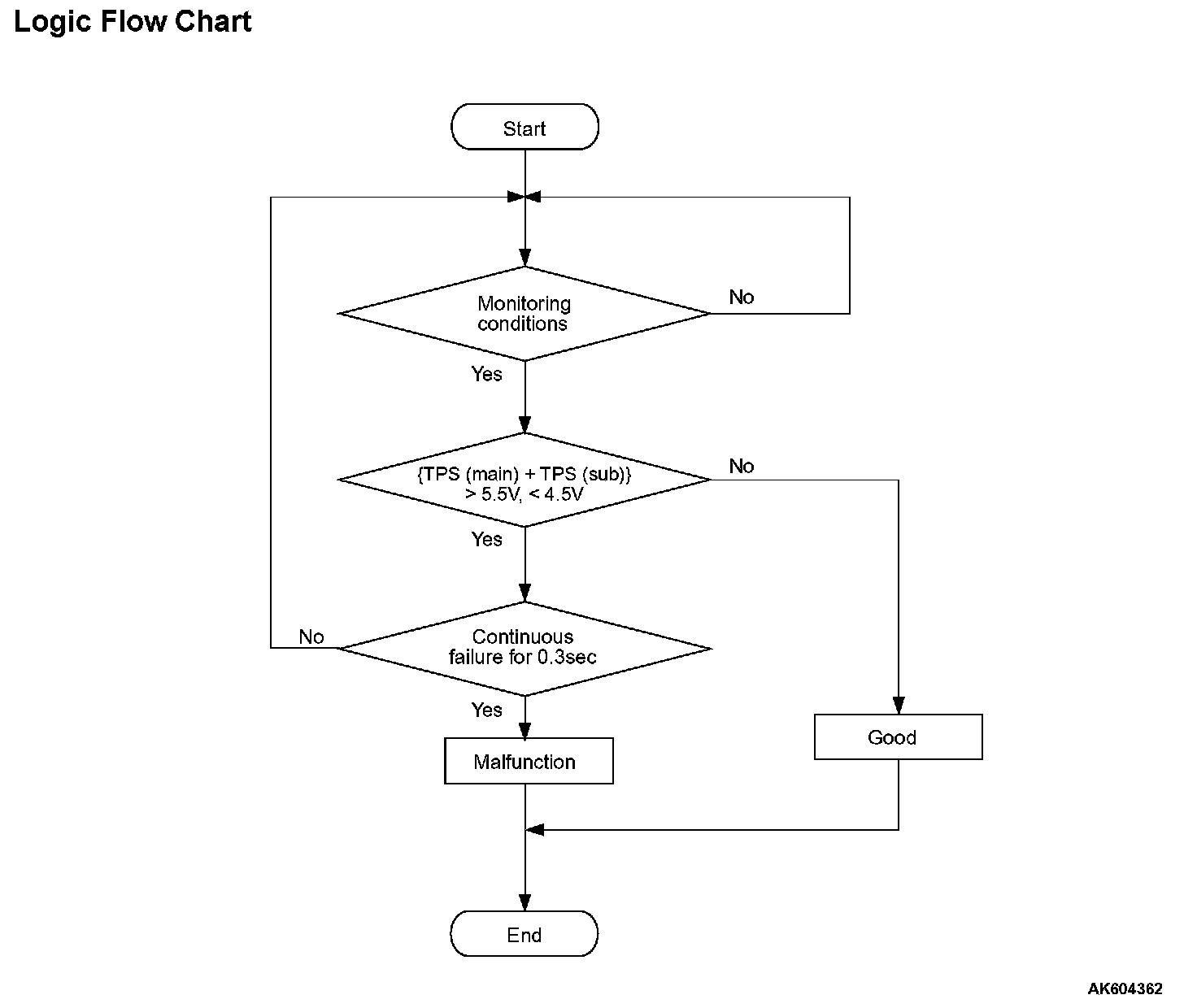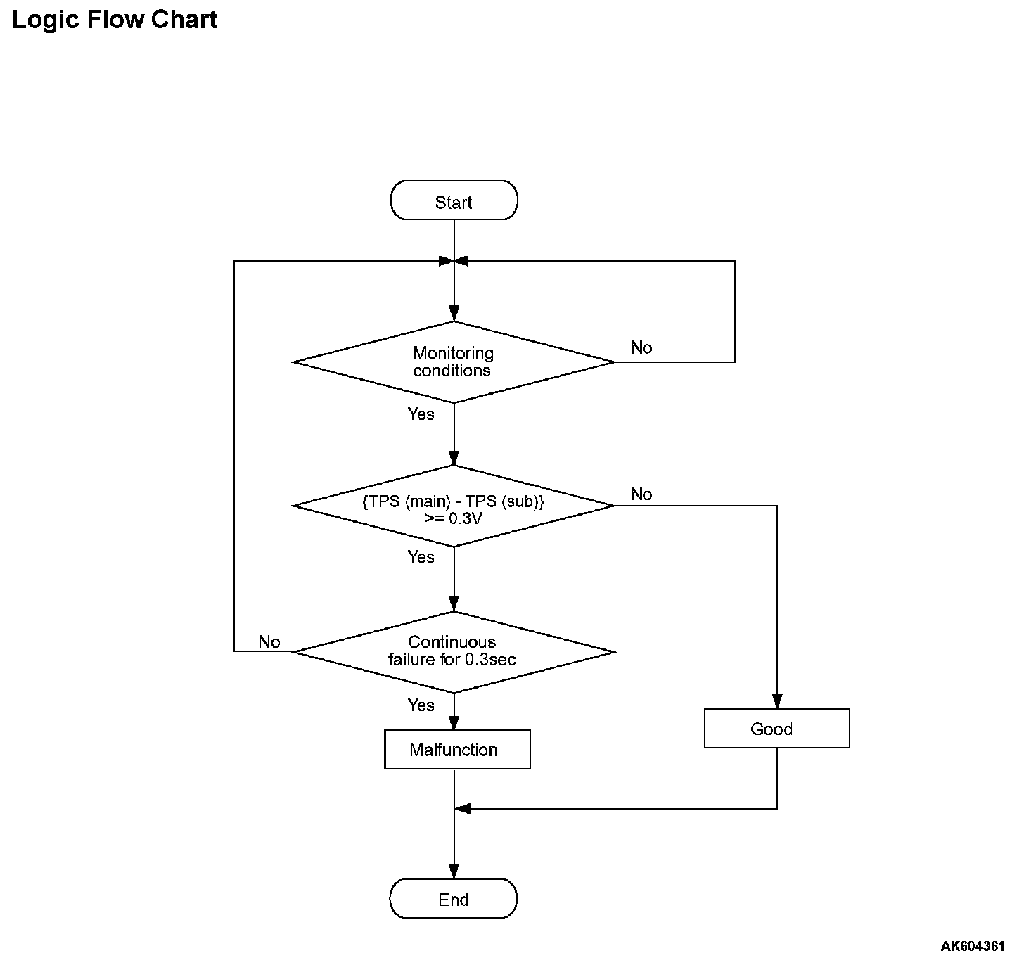 NO : Refer to, DTC P0222 - Throttle Position Sensor (sub) Circuit Low Input, P0222 DTC P0223 - Throttle Position Sensor (sub) Circuit High Input. P0223