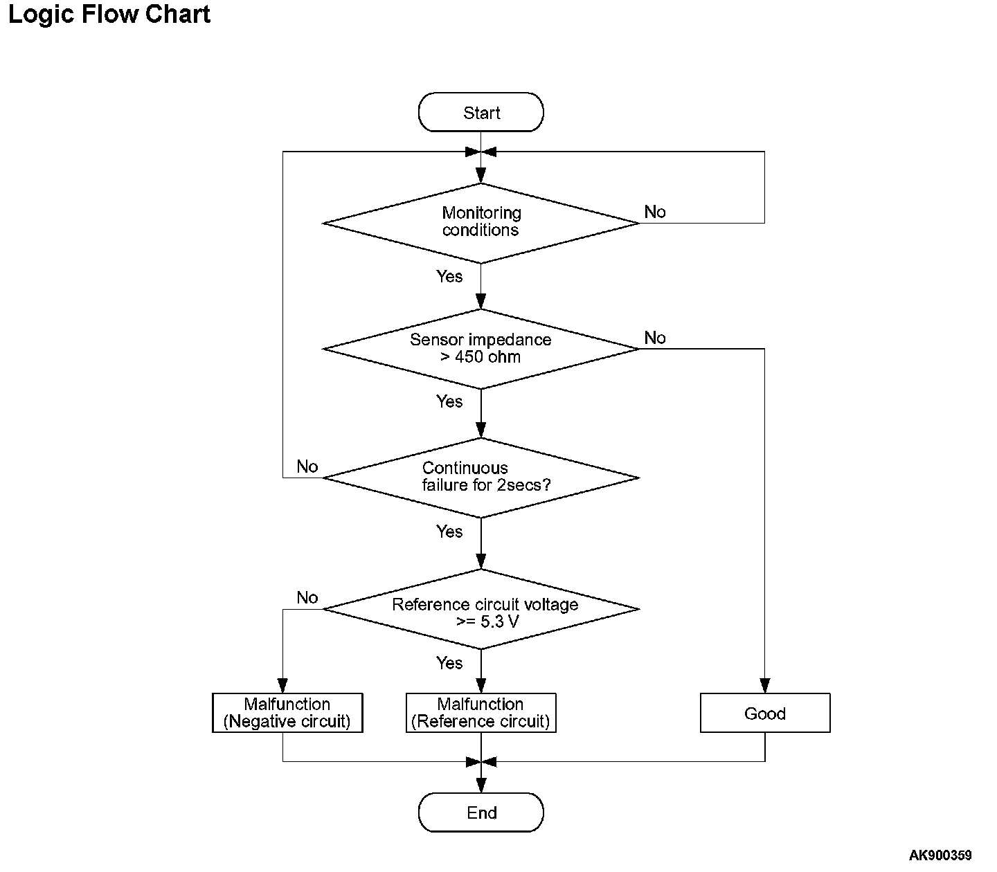 - The reference circuit voltage is more than 5.3 volts for 2 seconds.