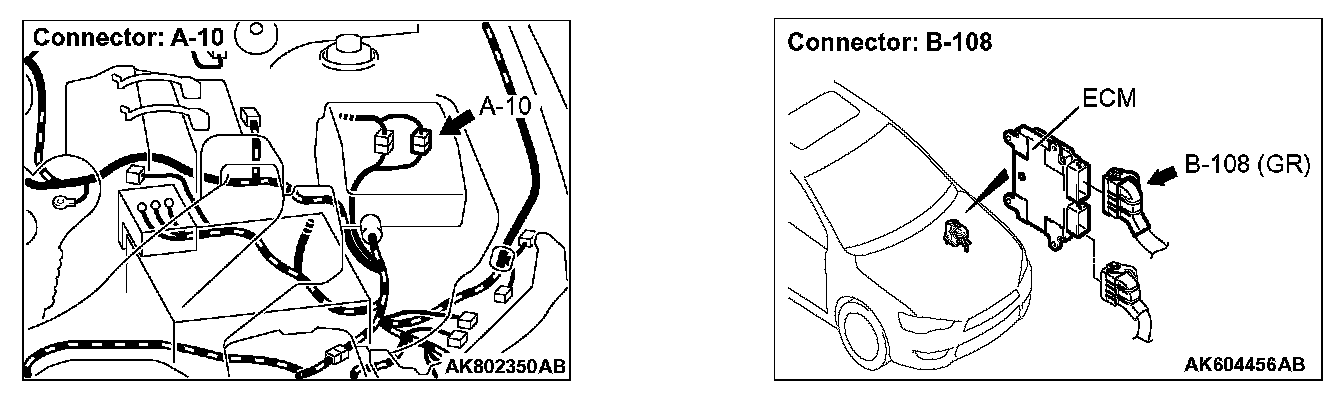 STEP 5. Measure the sensor offset voltage at ECM connector B-108 by using power plant ECU check harness special tool MB992110.