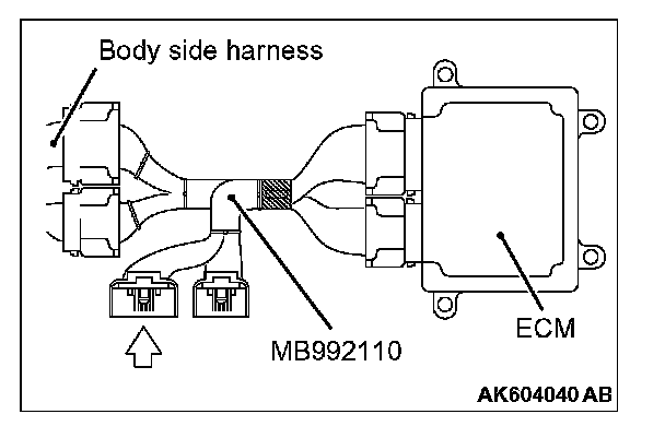 1. Disconnect all ECM connectors. Connect the power plant ECU check harness special tool MB992110 between the separated connectors.