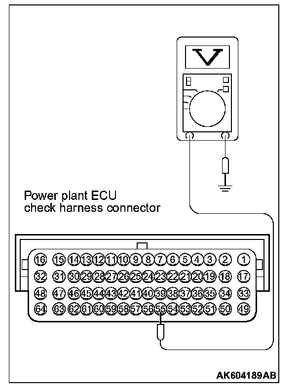 3. Measure the voltage between terminal No. 55 and ground.